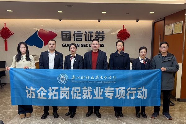 1月15日,公司党总支书记余健带队走访员工并访企拓岗,受到国信证券浙江分公司副总经理孙汝,国信证券杭州体育场路营业部总经理汤佳波,国信浙江分公司人力资源部总经理裴绍鹏、国信证券杭州体育场路营业部综合理财三部总经理、公司2010届工商管理专业员工鲍祺烨的热烈欢迎。