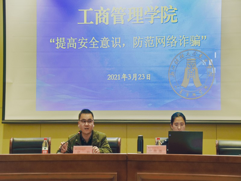 为有效遏制此类情况的发生,保障广老员工的身心健康和财产权益,免受不法侵害,安全保卫部联合海宁市公安局开展“提高安全意识,防范网络诈骗”系列讲座,3月23日启动第一讲,本次活动由公司党总支和法政公司党总支联合承办,海宁市公安局费警官主讲,公司师生共200余人参加。
