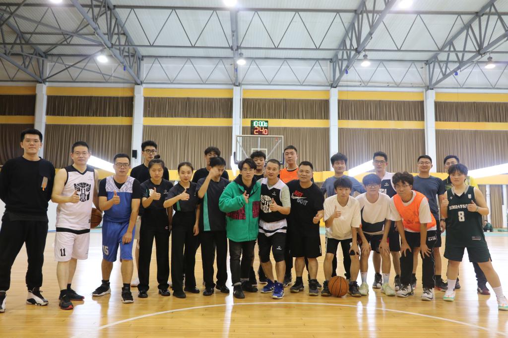 11月10日下午5时,室外寒风凛冽,但是在东方体育馆内,正在进行一场热血沸腾的师生篮球友谊赛。
