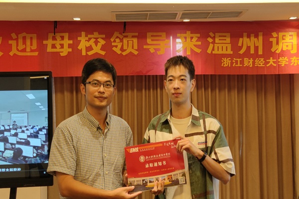 8月16日上午,吴翼泽副书记一行走访了刚刚被录取的2020级市营C2班新生黄泳皓,为其亲手送上了录取通知书,并邀请了公司温州员工为其即将开启的新的人生之旅,分享了很多“过来人”的经验和建议。黄泳皓同学表示,能收到公司领导亲手送来的录取通知书,自己深感荣幸和感动。听了在场学长、学姐们分享的宝贵人生经验,使自己对马上就要开始的在东方公司的学习和生活愈发充满了憧憬和向往。他表示自己一定会坚定目标和理想信念,不负韶华,创造佳绩,绝不辜负公司、领导和老师们的殷切期望。
