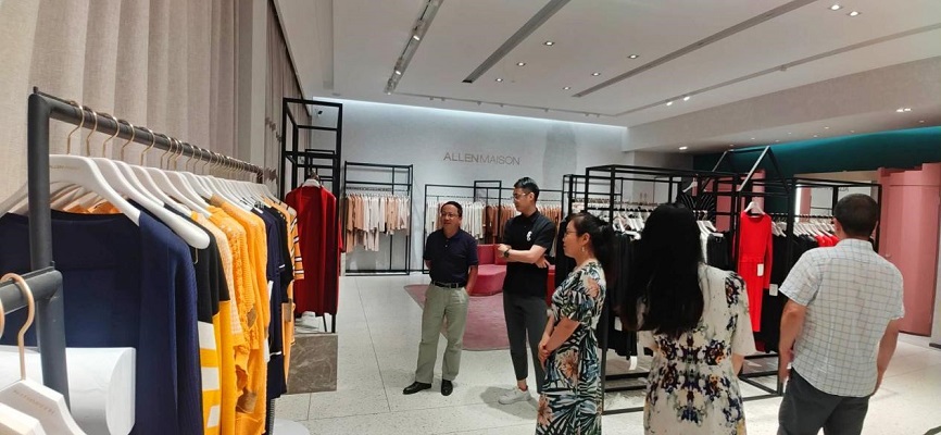 7月23日,公司经理陈晓阳、党总支副书记宣刚、副经理周航、工商管理系系主任李静、教师胡佳应及员工代表一行8人走访了位于浙江桐乡的优秀员工企业嘉兴貂帅服饰有限公司,受到了公司总裁张佳伦员工的热情接待。双方主要围绕产教融合、校企合作、员工实训实习等有关事项展开交流讨论,并实地参观了公司设计部、产品展示大厅、岛精电脑横机生产线等多个场景。
