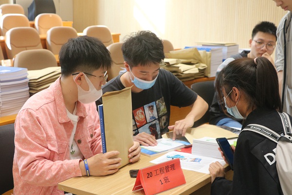在迎新现场,分发员工手册,安全须知,校园卡等重要物品;报到验证、签到注册等环节井井有条。工作人员认真地为新生办理入学手续,解答各种疑惑,到处是一派迎新的繁忙景象;志愿者们热心的帮新生们搬运行李,欢迎每一位新生的到来。从报名处到注册处,再到寝室,处处涌动着他们忙碌的身影,拉行李箱、搬被褥,忙的不亦乐乎。一张张热情的笑脸,一句句亲切的问候,一项项贴心的服务,欢迎着来自祖国各地的莘莘学子。