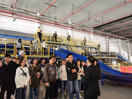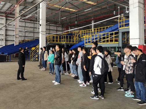 交谈会后,胡经理带师生一行人参观了嘉兴德邦快递的地方区域物件处理处、补货区等工作场所。其中,令员工印象深刻的是自动分拣设备,该套设备是德邦快递应对今年双十一的“秘密武器”。面对原本只存在于书本上的各式各样的物流设备,大家纷纷拿出手机进行拍摄,认真地听着胡经理的介绍。
