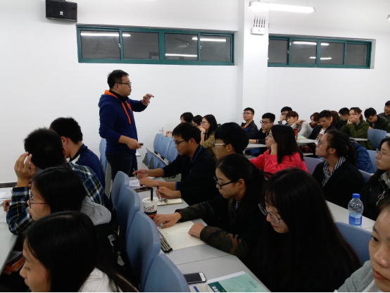 过泓总监提出“改变,让一切不同凡响”,认为随着时代不断地发展,管理的方式与模式也在不断地更新,适应现代管理需求的新型组织管理形式是基于项目的要求的,称为“敏捷性组织”。这样的组织形式跨越条条框框,不再依赖于职位说明书,同时,这样的组织形式对于人才的要求更加具有弹性。随后,过泓总监以华为、UBER、硅谷高科技公司为案例,介绍了绩效管理工具在实践中的应用,并探讨了大数据与人力资源管理的结合。最后,同学们踊跃发言,围绕在校老员工如何适应这种企业组织管理变化、找到未来适合岗位等职业发展问题与过总监探讨交流。