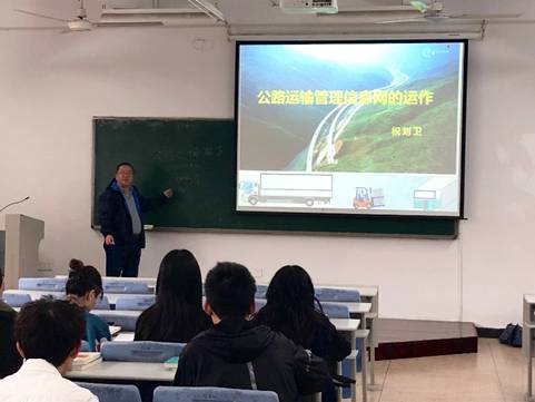 2019年11月12日早上8点半,工商管理分院18级物流管理专业员工在三号教学楼303教室聆听来自嘉兴市南湖区人力资源管理协会秘书长祝刘卫的讲座。本次讲座主题是《公路运输管理信息网的运作》。