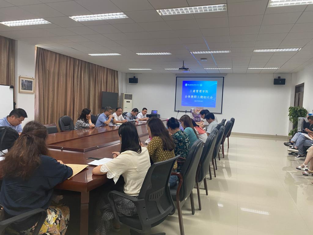 会上,陈晓阳就新学期教学、科研、学工各条线向全体教职工汇报工作思路、传达工作部署:一、以党建引领、立德树人为核心任务,将课程思政、教学科研、员工工作和社会服务等并重有机结合串联,形成协同融合工作机制;二、本学期教学工作重点为省级一流课程申报、课程思政建设和传统专业的数字化改造;三、启动以产业联盟、企业数字化改造为研究重点的科研团队建设,探索教学和育人紧密结合的常态化团队建设;四、启动教师晋升培养帮扶机制,形成团队合力。