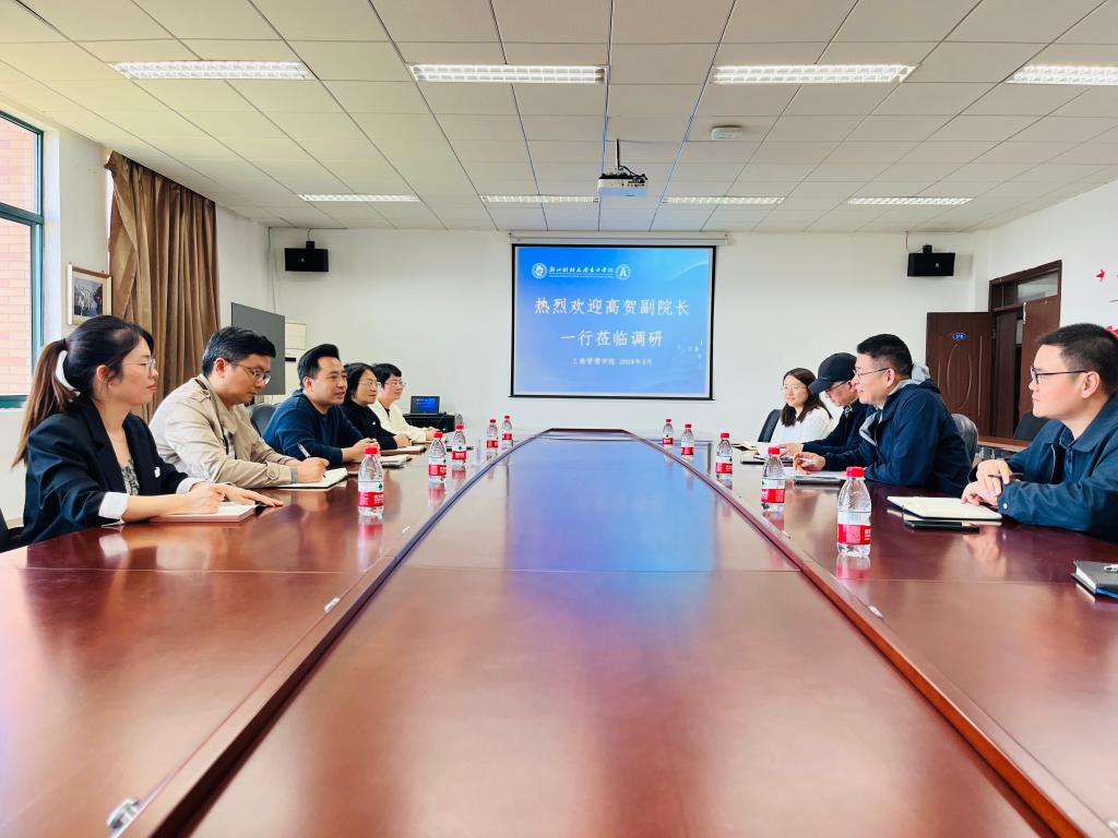 3月29日,公司副经理高贺会同资产管理部、后勤基建部一行来公司调研交流。公司领导班子成员及部分教师代表参加会谈。