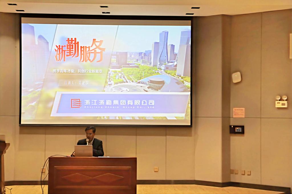 签约仪式圆满落幕后,吴建国为在场师生带来了一场精彩的企业宣讲。他不仅深入阐述了浙勤集团的企业文化和未来的发展蓝图,表达了集团对人才的迫切需求,详细解读了集团为优秀人才提供的各种广阔的成长平台和职业发展机会。此外,吴总还分享了自己的工作感悟,鼓励员工们要有远大的志向,勇于面对挑战,不断提升自我,以实现个人与企业的共同发展。他的话语充满了激励和期待,给在场师生留下了深刻的印象。这场宣讲,浙勤集团不仅展示了其作为其作为业界标杆的风采,也为公司员工们提供了宝贵的职业指导和启示。