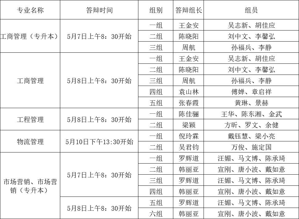 一、答辩分组及答辩形式