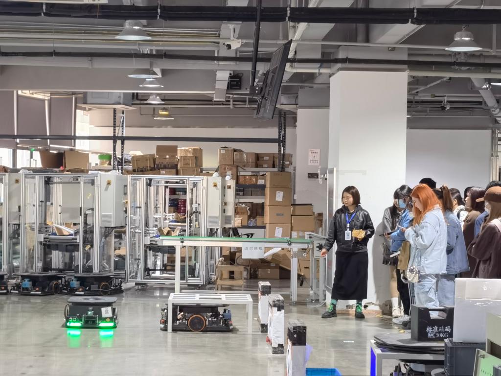 员工们在参观交流中了解到,国自目前有两大类产品,包括智能物流机器人和智能巡检机器人。智能物流机器人包括叉车机器人、潜伏顶升机器人、拣选机器人、重载型AGV等,其主要实现的功能包括搬运、码垛、拆垛、分拣等,在物流领域及工业制造领域,包含汽车、电子、金属加工等行业,应用广泛。巡检机器人主要运用在变电站设备其系统以自主或遥控的方式,在无人值守或少人值守的变电站对室外高压设备进行巡检,可及时发现电力设备的缺陷、异物悬挂等异常现象,自动报警或进行预先设置好的故障处理。在产品实验室里,员工们看着各式各样先进的物流机器人,深切感受到了科技给物流行业带来的冲击。