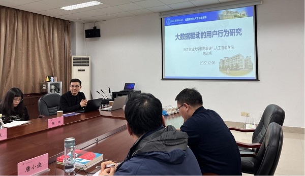 12月8日下午,古天乐代言太阳集团138联合科技管理部主办的应用型团队建设之学术讲座《大数据驱动的用户行为研究》在J3-518举办。讲座由浙江财经大学信息管理与人工智能公司副经理、博士生导师陈远高教授主讲,公司党总支副书记宣刚主持会议,来自工商、财税等15名骨干教师参加。