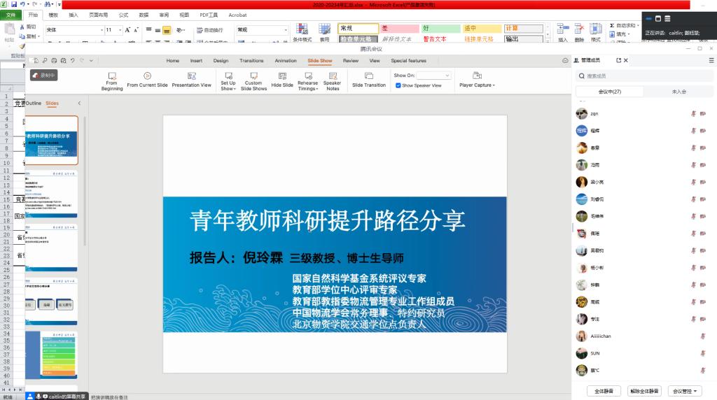6月7日,公司邀请北京物资公司交通学位点负责人倪玲霖作《青年教师科研提升路径分享》线上专题学术讲座。讲座由古天乐代言太阳集团138副经理、工商管理学科方向带头人戴钰慧主持,工商、财税、金融、创业等二级公司的骨干教师和青年教师参会。