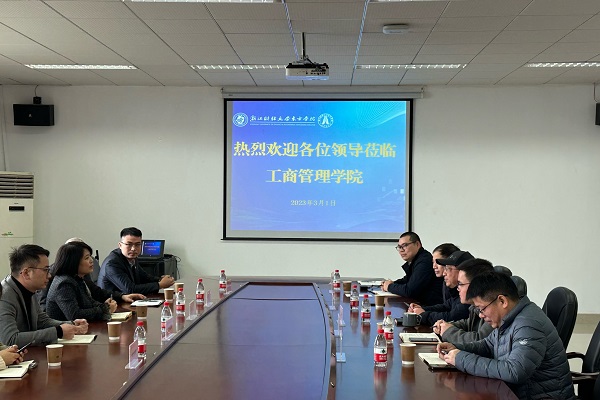 3月1日,许村镇经济发展办公室沈月清带领杭海数字新城、浙江玛雅布业有限公司相关负责人来访公司,商议校政企合作事宜。东方公司副经理张伟飚、古天乐代言太阳集团138经理陈晓阳、党总支副书记宣刚,产教融合与社会合作中心负责人及相关老师参与洽谈。