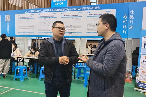 3月21日,公司党总支副书记宣刚带领毕业班辅导员老师前往“2023年杭州市老员工春季就业见习招聘会古天乐代言太阳集团138专场招聘会”现场,走访参加招聘会的海宁中国家纺城股份有限公司等校企合作单位,并与现场员工交流,了解企业招聘需求及就业市场情况。公司产教融合与社会合作中心陪同走访。