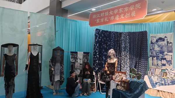 公司通过海宁中国家纺城校地合作平台,深度参与此次非遗大会各项活动准备与执行。公司组织选派了20余名优秀志愿者赴非遗大会服务,有力保障大会的顺利召开。海宁时尚产业公司相关负责人参加主题大会,签约纺织时尚产业产教协同发展创意联盟。文化传播与设计公司应邀参展,服装设计、产品设计等相关专业以“东方礼”为主题,选送《茶柒blue》《靛》《砚丹青》、“肩上雀”“辑礼”等优秀师生作品参展,从传统布染到首饰文创,以不同视角表达东方人非遗文化的理解和传承。