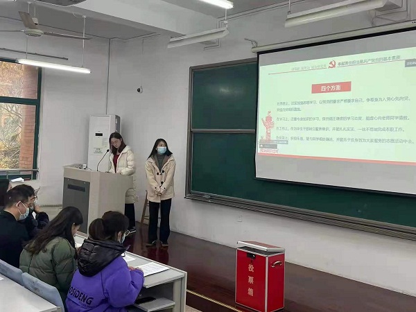 第一入党介绍人支部书记马硕晨同志介绍发展对象情况;第二入党介绍人王雅馨同志介绍发展对象情况;与会党员陈志渝同志发表对发展对象的意见。希望他们可以认清自己的缺点,并在之后的学习工作生活中加以改进。