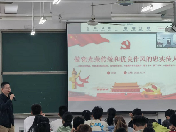 公司党总支书记余健从“始终对党忠诚”,“理论联系实际”,“密切联系群众”,“批评和自我批评”,“敢于斗争、善于斗争”,“永远艰苦奋斗”六个方面向大家讲述了党的优良作风,并要求同学们从忠、孝、勇、慈、朴五个方面提升自己,做党光荣传统和优良作风的忠实传人,从个人的层面上升到社会的层面乃至全人类的层面。