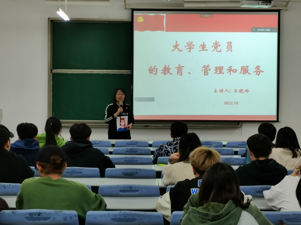 第四讲邀请到后勤基建部党支部书记王晓玲。王老师从身边的人和事出发,强调员工党员培养贡献精神和服务意识的重要性,告诫同学们“老老实实做人,踏踏实实干事,清清白白为官”。在学习方面严格要求自己,在生活方面学会自省——自我教育、自我管理、自我服务,做到“吾日三省吾身”、“学思践悟”、“在学中做,做中学”。鼓励同学们成为一位德才兼备、有胆有识的学习型党员,不断地创造实现自我价值的机会。接着,王晓玲借用著名学者曾国藩的交友之道,提倡同学们在大学积极交友而非盲目交友。此外,她还从新冠疫情防控以及公司后勤基建部相关工作中引出青年员工要有担当,在社会活动中负起责任,做到“心中有爱、眼里有光、志存高远”。最后,她强调了加强党性修养的重要性和必要性,呼吁同学们不做旁观者,争当建设者、奉献者、贡献者,担当起青年一代民族复兴的使命。