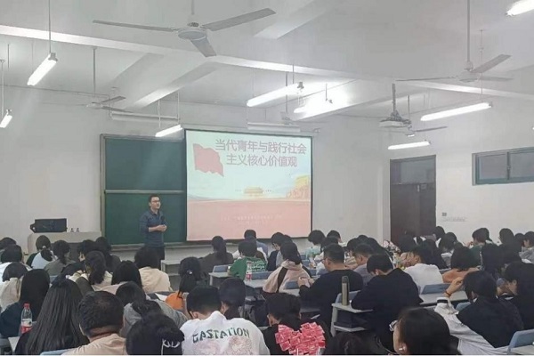 宣刚围绕“当代青年与践行社会主义核心价值观”,分析了“社会主义核心价值观”的重要内涵和本质要求,提出了新时代新征程青年的际遇、责任与担当,激励同学们发扬奋斗精神,勇担历史使命。同时,宣老师强调当代青年应该牢记“勤学、修德、明辨、笃实”八字箴言,也指出员工在做好本职工作的同时,更要贯彻党的群众路线,不忘初心牢记使命,筑牢理想信念根基,练就过硬本领,发扬担当和斗争精神,锤炼对党忠诚的政治品格,树立不负人民的家国情怀,追求高尚纯粹的思想境界,为党和人民事业拼搏奉献。最后,他希望同学们能将社会主义核心价值观转化为人生的价值准则,勤学以增智、修德以立身、明辨以正心、笃实以为功。用所学知识和硬核的行动回应时代的挑战,书写最美的青春,担当时代的大任!