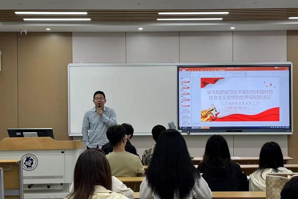 公司党总支书记余健向在场学子讲述习近平总书记在党的二十大指出马克思主义中国化思想的重要性,并指出中华民族伟大复兴的关键,同时也点出了本次培训的重点——学习新思想。培训中余健围绕“六个坚持”,深刻诠释了习近平新时代中国特色社会主义思想,旨在让各位入党积极分子增强党性党悟,更深刻地了解并运用习近平新时代中国特色社会主义思想。最后,余健表示,青年一代有理想、有本领、有担当,国家就有前途,民族就有希望。