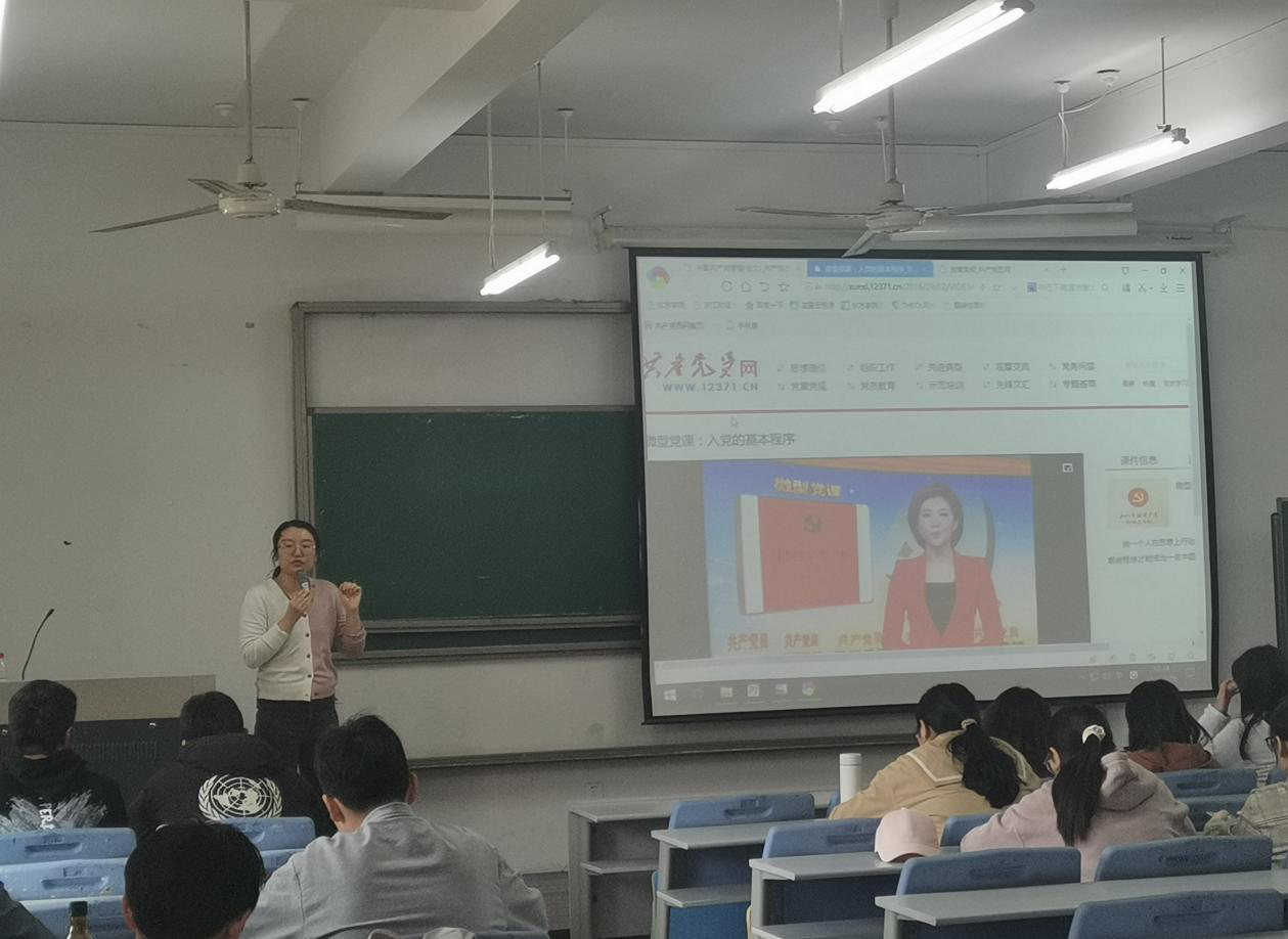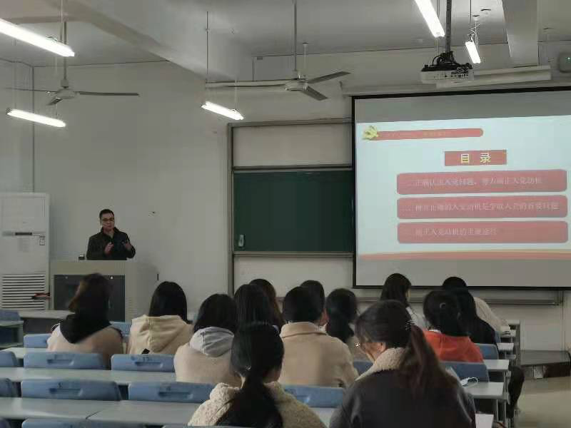 宣刚老师告诉同学们要正确认识入党问题,努力端正入党动机,讲述了几种不同入党动机并分析了其不端正之处,同时列举了端正入党动机的主要途径。正确的动机,是正确行动的精神路线。只有树立了正确的动机才能具有持久不衰的动力。同学们只有树立了正确的入党动机才能够经受住党组织的考验,更好地坚持为人民服务。