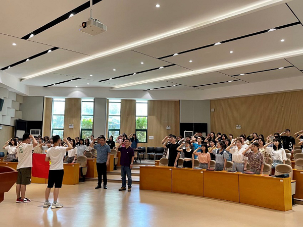 党课现场气氛热烈,毕业生党员们表示将不忘初心、不忘母校,努力培育自己的全球视野、家国情怀、专业素养、仁爱之心,成为有理想、有本领、有担当的时代新人。最后,全体党员重温入党誓言,党课在慷慨激昂、热情豪迈的宣誓中圆满结束。