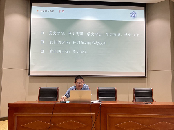 余健围绕“党史学习”、“我们的大学”、“我们的目标”等三个方面进行了深入阐述。他指出,今年是建党100周年,党史学习教育是我们党的重要任务,了解历史才能看得远,理解历史才能走得远。同时向员工党员提出了对党忠诚是大德,为民造福是公德,严于律己是私德的要求。