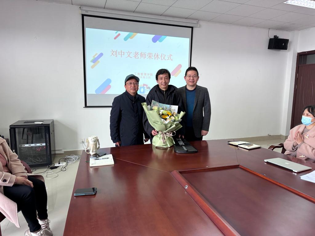 仪式上,公司领导向刘中文老师献上鲜花和纪念品,并合影留念。