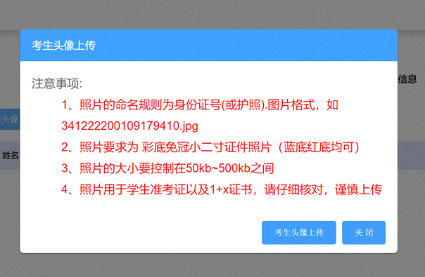 考生需在规定时间内提交个人信息包括:姓名,身份证号,学号,手机号及考生头像。考生头像要求如下图所示。