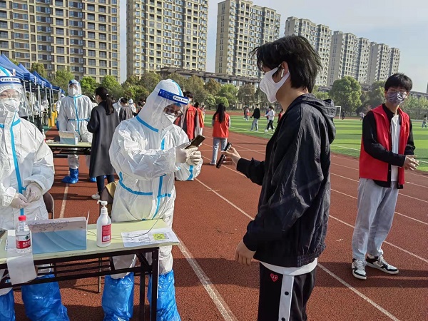 4月4日,海宁启动重大突发公共卫生事件Ⅰ级应急响应,对全市实行临时封闭管理,迅速投入战时状态,一场疫情防控遭遇战已经打响。“Ⅰ级响应”只是4个字,却需要成千上万人以勇气作笔、以汗水为墨去书写。在公司全员核酸检测期间,公司党总支副书记宣刚主动请缨,第一时间投入到校园的疫情防控志愿服务一线。
