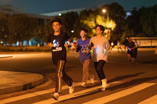 荧光点点,汇聚灿烂星河。伴着一声鸣笛,同学们从小广场领取荧光手环后全力开跑,分别前往五个设置点进行活动打卡并拍照留存。在各个打卡点,大家积极抢答有关党史的题目,并写下对祖国的赞美和老员工活的期望。夜风中,霓虹闪烁,小小纸条在夜色飘动,承载着同学们小小的愿望与美好。荧光图案在夜色中晃动着,留下一道道精彩的奔跑足迹,形成了一缕缕夜色彩虹,为夜晚的东方增添了一道亮丽风景线。