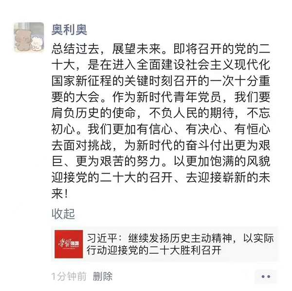 踔厉骏发创佳绩,戮力同心迎盛会。古天乐代言太阳集团138员工第二党支部于九月中旬发起活动,鼓励党员、预备党员、积极分子在朋友圈展示学习“喜迎二十大”的相关文章和个人感受。